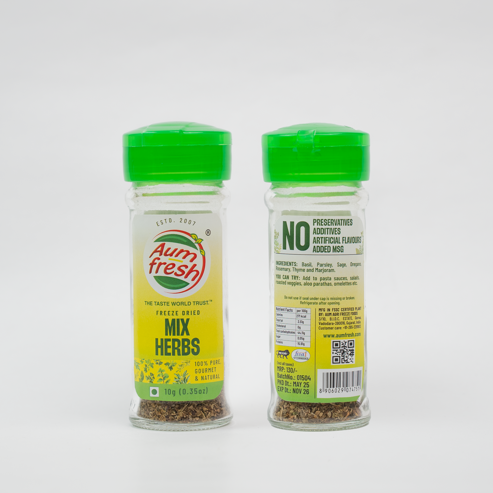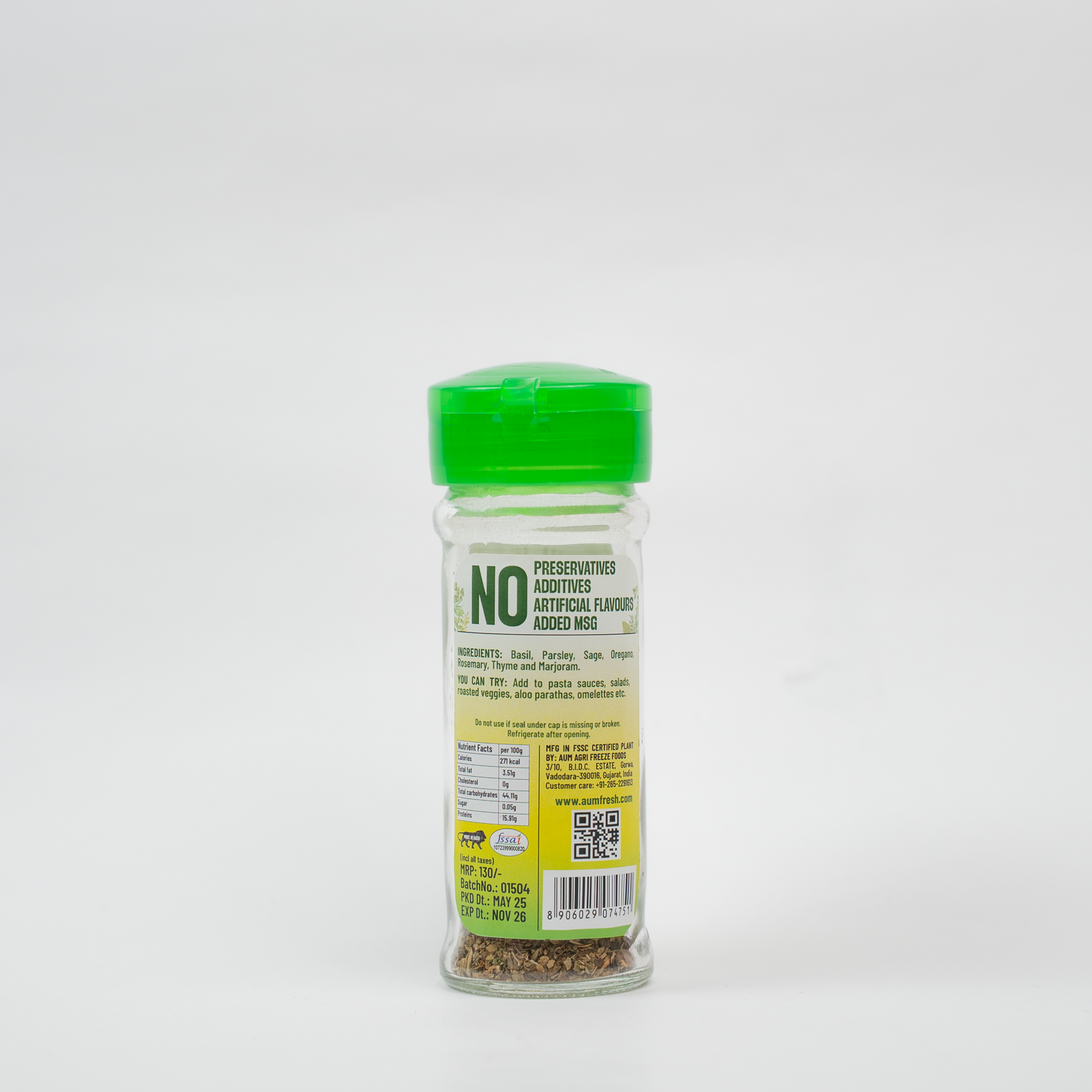 Aumfresh Mixed Herbs is a blend of herbs that can be used in favourites such as spaghetti, casseroles, garlic bread and can be added to multiple Indian dishes too.
